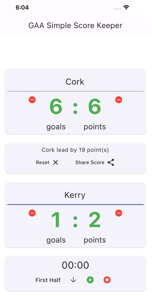 - Timer and ability to specify when in the match (First half, half time, second half, extra time, full time). The timer value and part of the match are shared when you opt to share the scores.